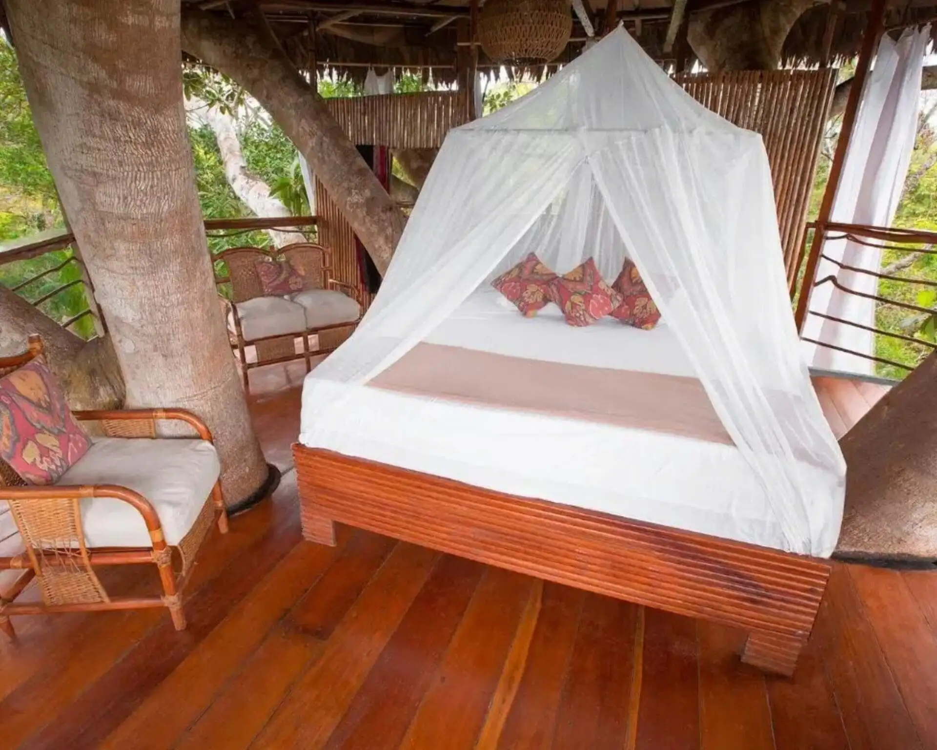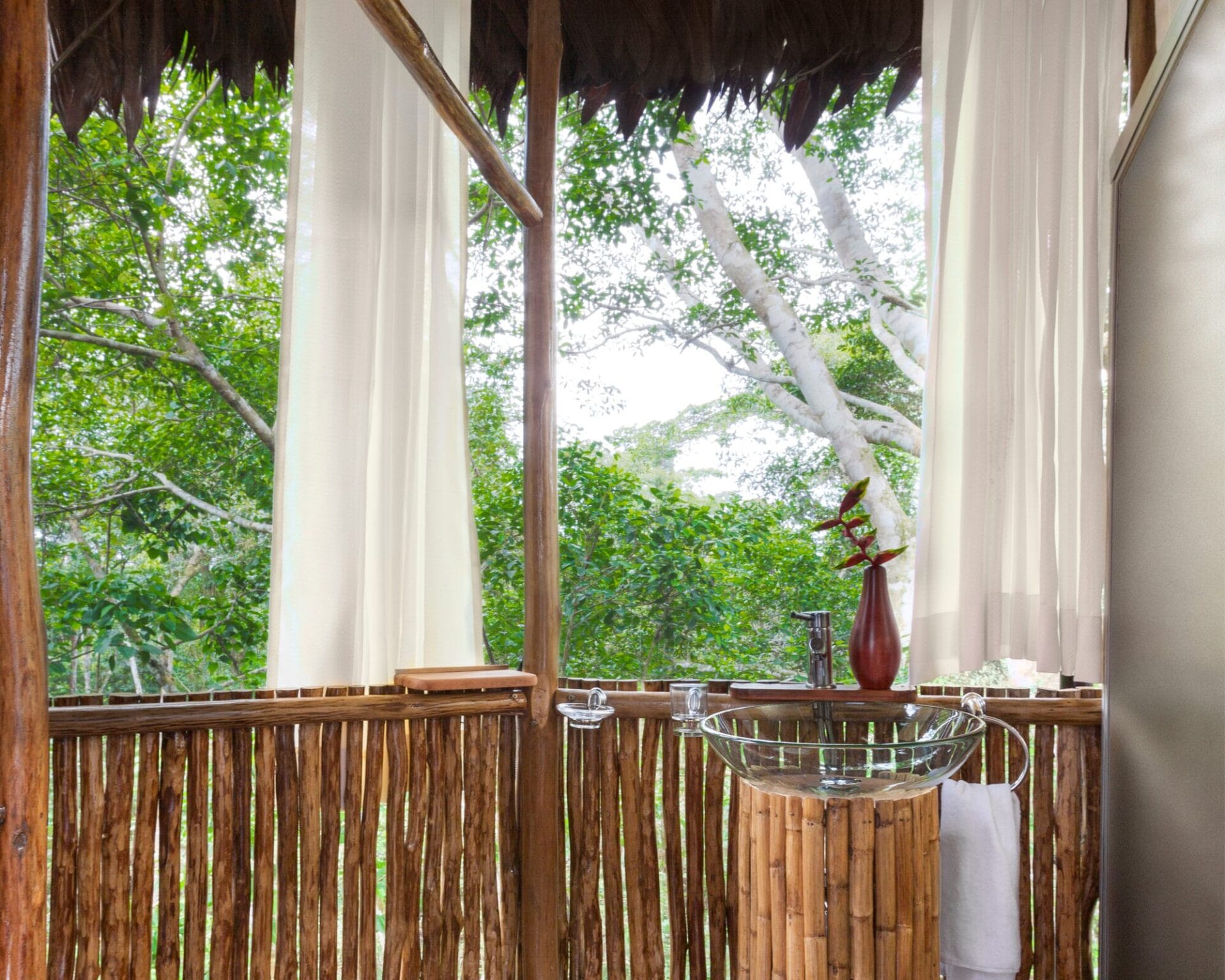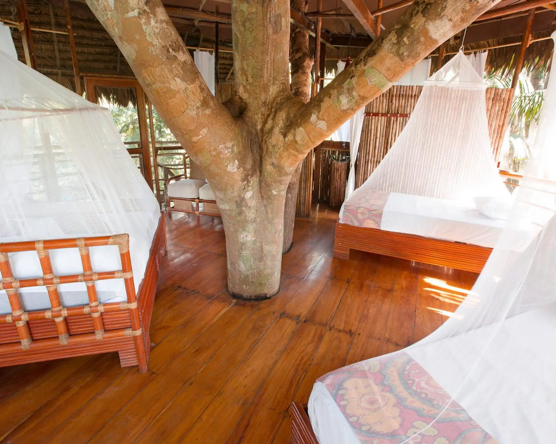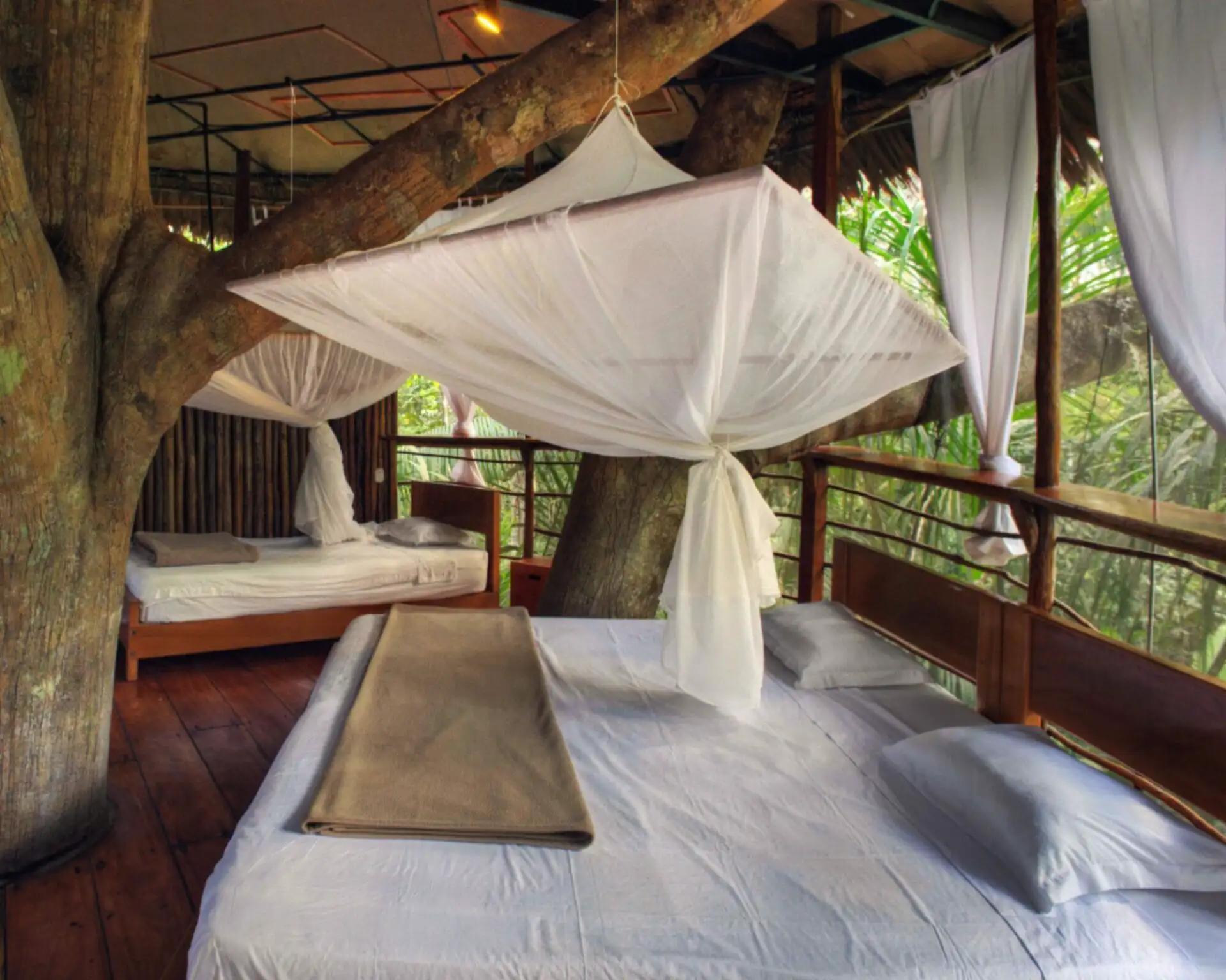 You’ll never forget the experience of watching monkeys and birds at eye level, as every morning you’ll wake up to a safari of animal life before you even get out of bed. Not to worry, you won’t sacrifice any of the usual comforts found on the ground. Every bungalow is equipped with showers, sinks, toilets, and clean white linens. Your personal treehouse bungalow gets you up off the jungle floor and helps you enjoy the airy relief from the heat and humidity. Sure, you’ll get a little extra exercise walking up there, but after a meal filled with our delicious food, you’ll welcome it.